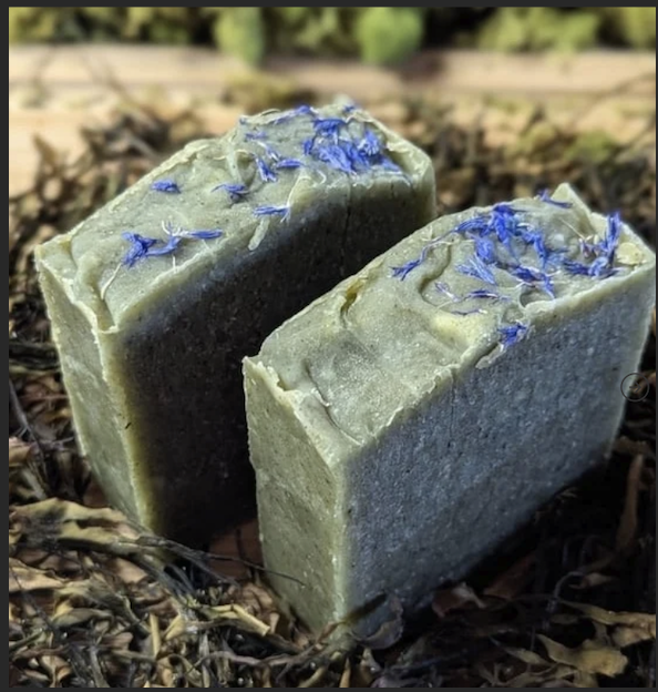 Forager and wildcrafter Liz Vermillion makes seaweed soaps. They are scented with Clary Sage and Cypress (to emulate the Monterey Cypress trees) essential oils and naturally colored with Spirulina powder that also provides anti-aging benefits. Ingredients: Foraged Seaweed infusion and puree, Spirulina powder, Olive Oil, Cocoa Butter, Coconut Oil, Avocado Oil, Sodium Hydroxide, Clary Sage, and Cypress essential oils. Topped with herbs from the garden